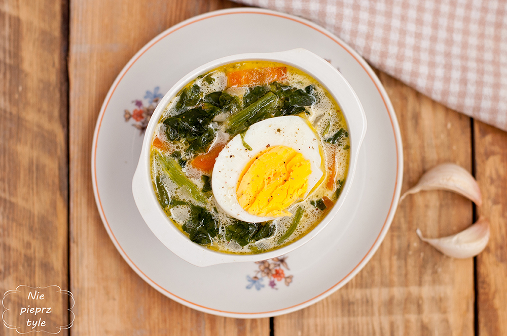 Uwielbiamy zupy. Najbardziej zupy krem. Jednak zdarza się czasem zupa z wkładką 😉 Zupa szpinakowa z jajkiem świetnie się nadaje na upały, bo można potraktować ją jak chłodnik.