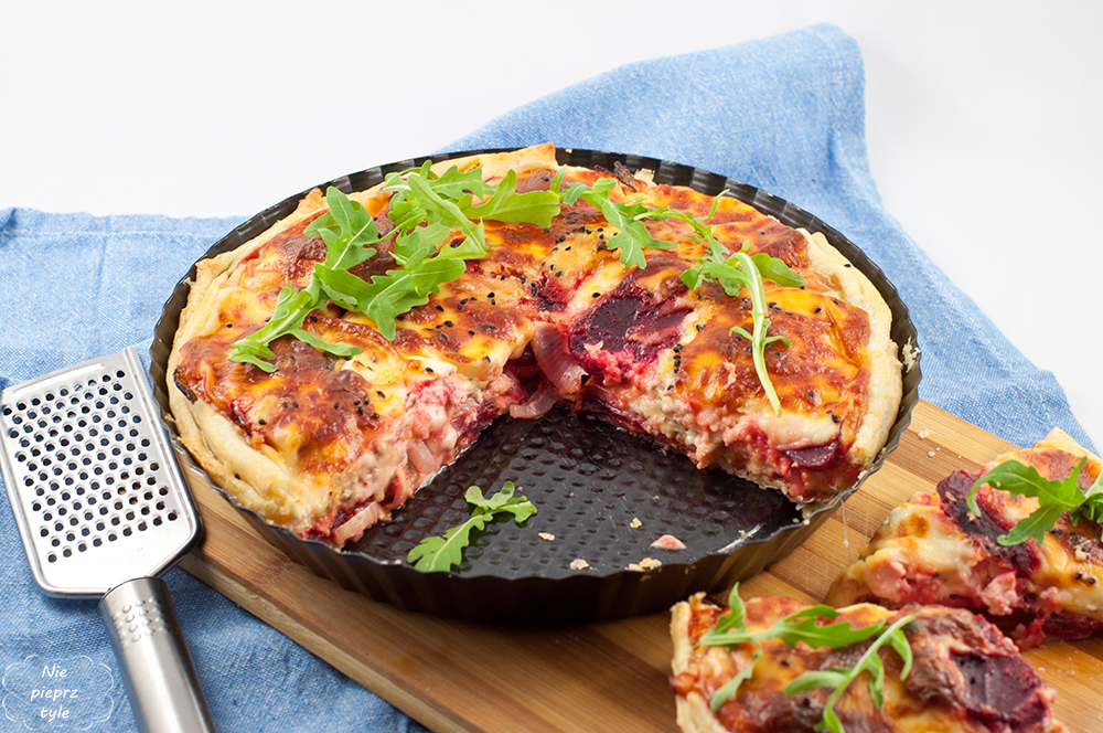 Pamiętacie quiche ze szpinakiem? Dziś pyszne połączenie różnych serów z burakiem.