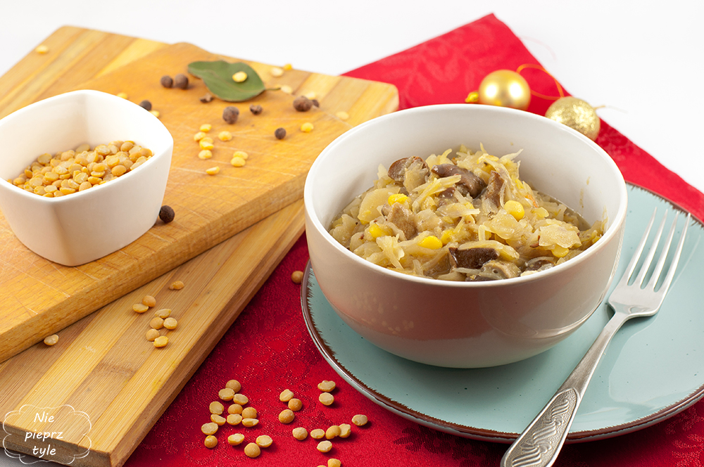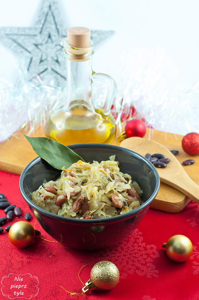 Już wcześniej wspominaliśmy, że kapusta i grzyby pojawiają się na naszym świątecznym stole pod różną postacią. Święta nie mogą się obejść bez kapusty z grochem. My jednak również przygotowujemy drugą wersję kapusty i robimy ją z fasolką czerwoną. Jeden przepis, dwa dania.
