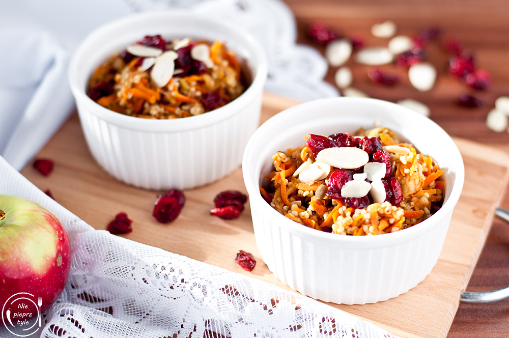Kasza jaglana z owocami komponuje mi się znakomicie. Próbowałam zamienić owoce na warzywa żeby sobie urozmaicić moje śniadaniowe jaglanki. Jednak, jeszcze mnie nie przekonuje to połączenie. Znalazłam za to coś pomiędzy. Kasza jaglana, marchew i jabłko.