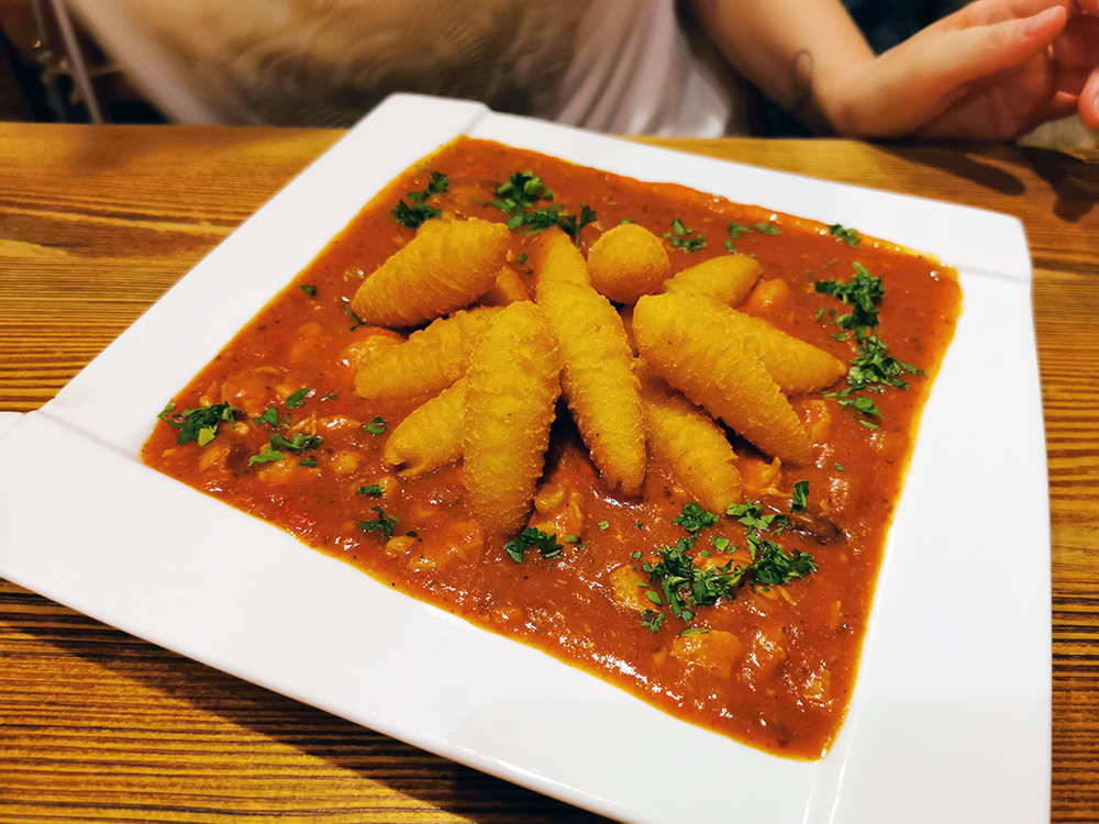 Z kolei na talerzach pojawiły się „Tvarůžky” ołomunieckie serki z salami smażone w cieście piwnym z frytkami oraz sosem tatarskim i delikatny gulasz z piersi indyka z leśnymi grzybami podany z chrupiącymi krokietami ziemniaczanymi.