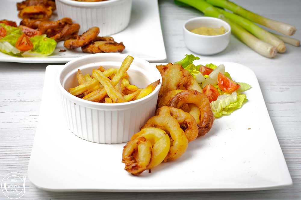 - Na głębokiej patelni rozgrzej olej. Każdy krążek kalmara zanurz w przygotowanym cieście, a następnie niewielkimi partiami wrzucaj na rozgrzany tłuszcz. Smaż 7-10 minut, aż ciasto będzie mocno pomarańczowe.