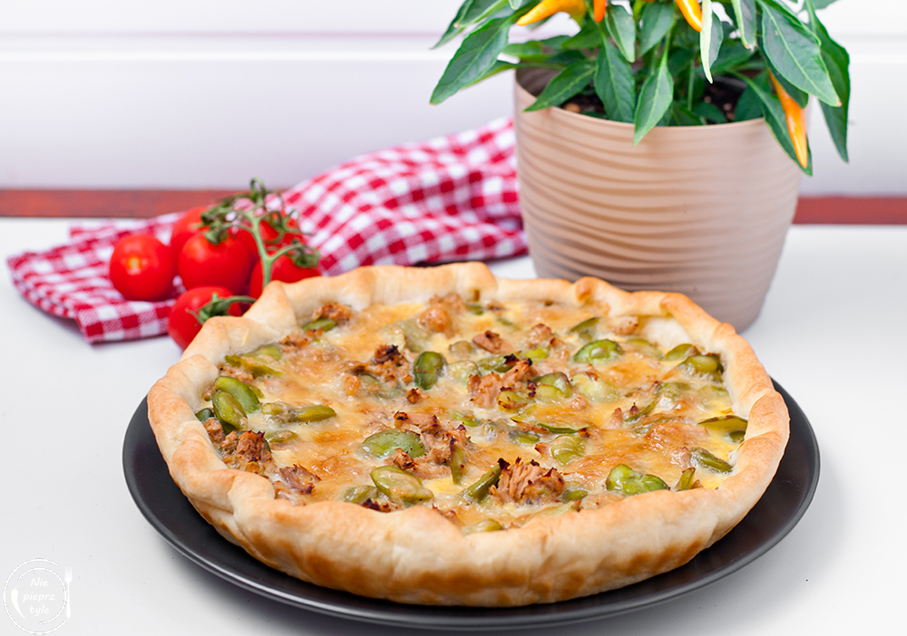 - Rozgrzej piekarnik do temperatury 180 stopni Celsjusza. Piecz tartę 25 minut funkcja góra-dół. Pod koniec pieczenia możesz zmienić na termoobieg. Tarta powinna się zezłocić.